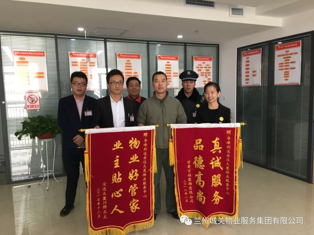 近日,金達(dá)商務(wù)大廈24樓業(yè)主將題有“真誠服務(wù),品德高尚”、“物業(yè)好管家,業(yè)主貼心人”的兩面錦旗送至華峰利達(dá)物業(yè)公司,并對(duì)工作人員心系業(yè)主、認(rèn)真負(fù)責(zé)的工作態(tài)度表示了肯定和感謝。