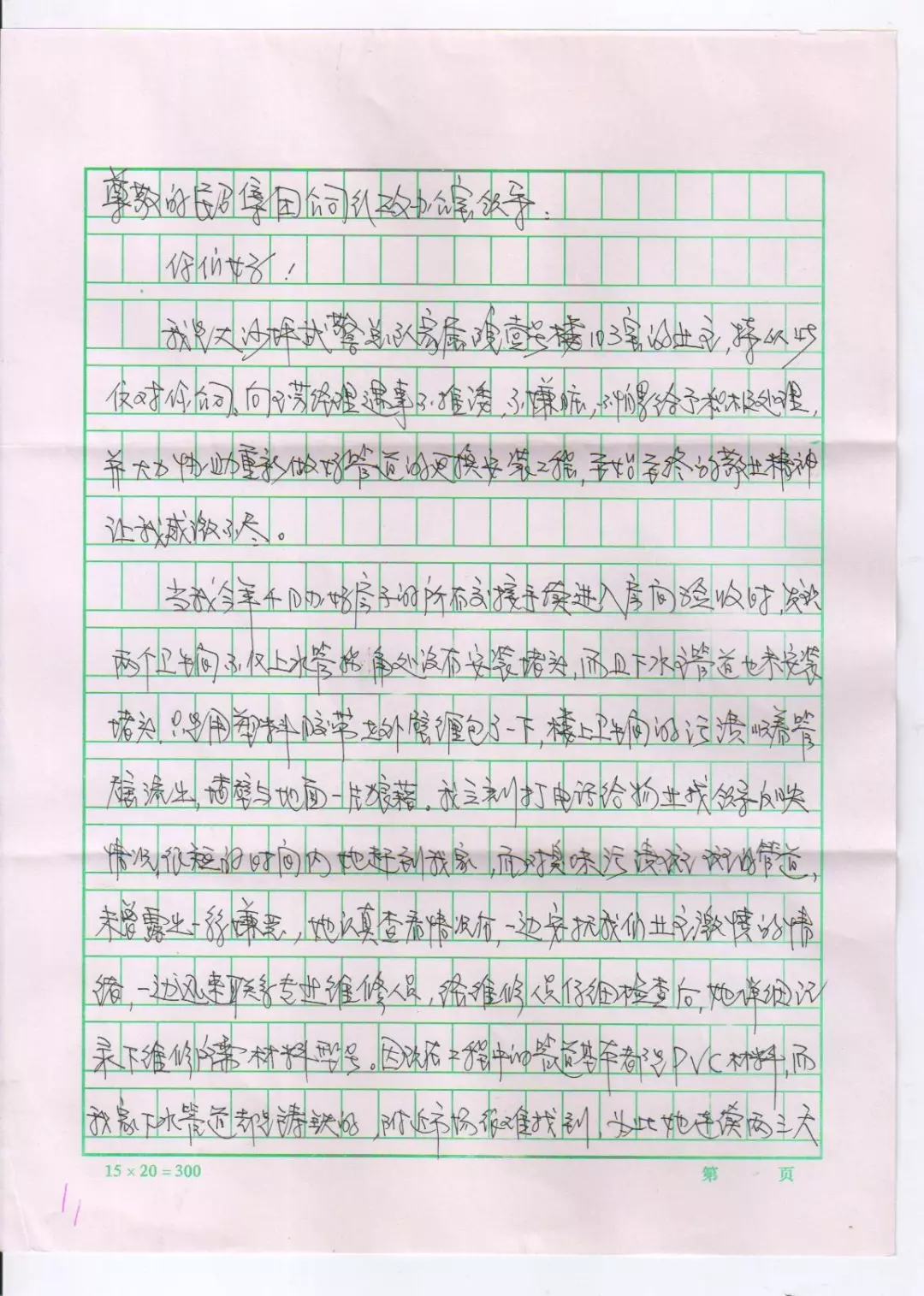 在為錢先生解決下水管道滲漏問題及安裝更換的過程中,向玉芳經(jīng)理沒有一絲推諉,沒有一句抱怨,不嫌臟亂、認真負責的工作態(tài)度得到了業(yè)主的肯定和贊譽。業(yè)主錢先生特意寫來感謝信,以此來表達對向玉芳經(jīng)理的感激之情,及對城關物業(yè)服務工作的肯定和贊揚。