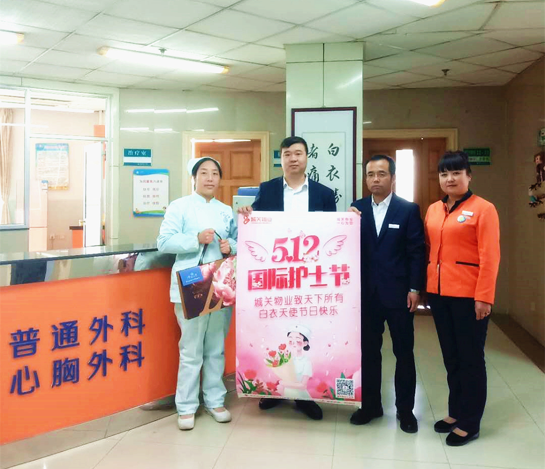 蘭州城關(guān)物業(yè)服務(wù)集團有限公司服務(wù)業(yè)態(tài)多樣,目前主要有住宅類、城市管理類、寫字樓類、醫(yī)院類、院校類、其他類等。此次, 值此5·12國際護士節(jié),蘭州城關(guān)物業(yè)醫(yī)院類事業(yè)部與白衣天使進行了一場美麗的約會,我們特別組織舉辦了相關(guān)慰問活動,分別向蘭大一院、蘭大二院、肺科醫(yī)院等各科室護士贈送了禮品及鮮花,為這些始終堅守一線的白衣天使送去節(jié)日的祝福,此舉獲得了院方領(lǐng)導(dǎo)的一致好評及贊譽。