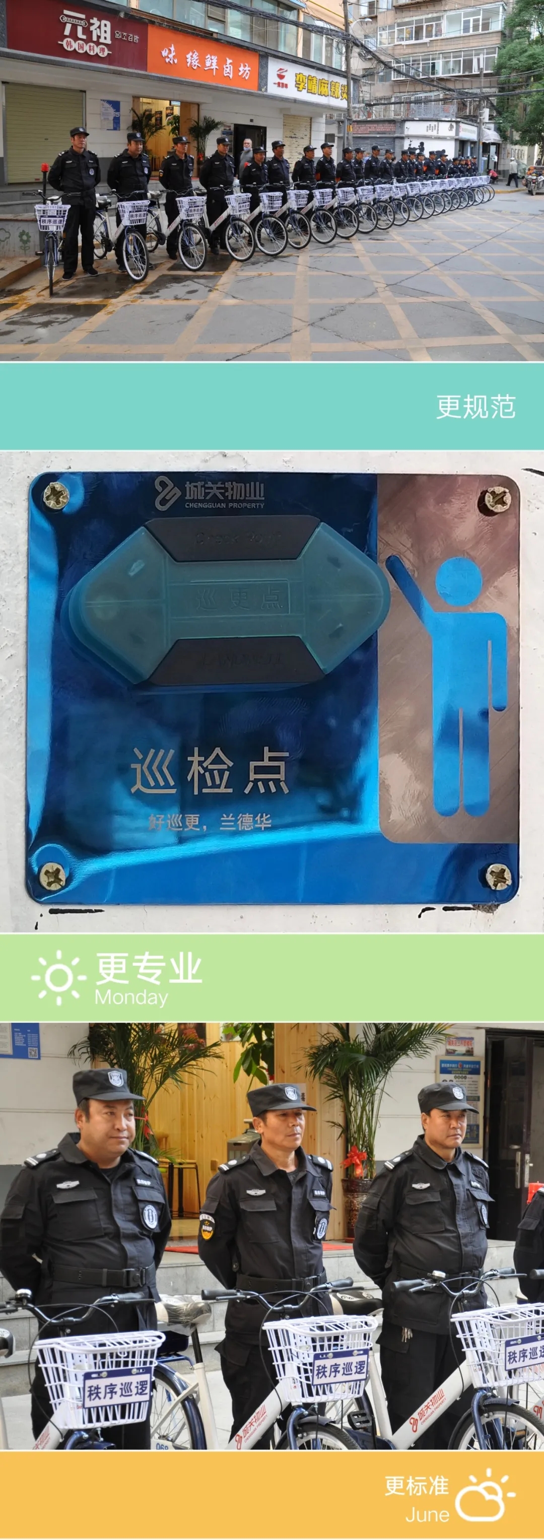 以往的老舊樓院設(shè)施陳舊,院內(nèi)環(huán)境臟亂差。全面接手以來(lái),我們對(duì)轄區(qū)內(nèi)進(jìn)行了徹徹底底的“整容”。定時(shí)、定點(diǎn)對(duì)老舊樓院各個(gè)角落清掃,平整院內(nèi)道路,粉刷樓梯墻面,增設(shè)門崗門衛(wèi),安裝門禁系統(tǒng),對(duì)公共設(shè)施進(jìn)行全面維修維護(hù),不斷完善的服務(wù)讓老舊樓院“穿”上了嶄新的“衣服”,院落整潔了,管理有序了,居住環(huán)境也更加安全了。