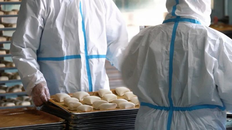 機(jī)器24小時開足馬力運(yùn)轉(zhuǎn),工人兩班倒,每班20個人連軸轉(zhuǎn)。和面、壓面、面劑切割、上架、醒面、蒸制、出屜、打包……流水線上井然有序。蘭州民生早餐食品有限公司總經(jīng)理卜靜安在車間不斷巡查,質(zhì)量關(guān)、衛(wèi)生關(guān)、安全關(guān),他都要操心!斑@段時間,除了佩戴口罩,公司所有生產(chǎn)、配送人員都要求穿防護(hù)服,做到疫情防控和安全生產(chǎn)兩不誤!彼割^算了一下,公司一直采購的是50斤裝的面粉,這段時間每天要用去200袋面粉,也就是10000斤。按照30袋面粉做1萬個饅頭來算,平均每天出屜的饅頭有六七萬個。