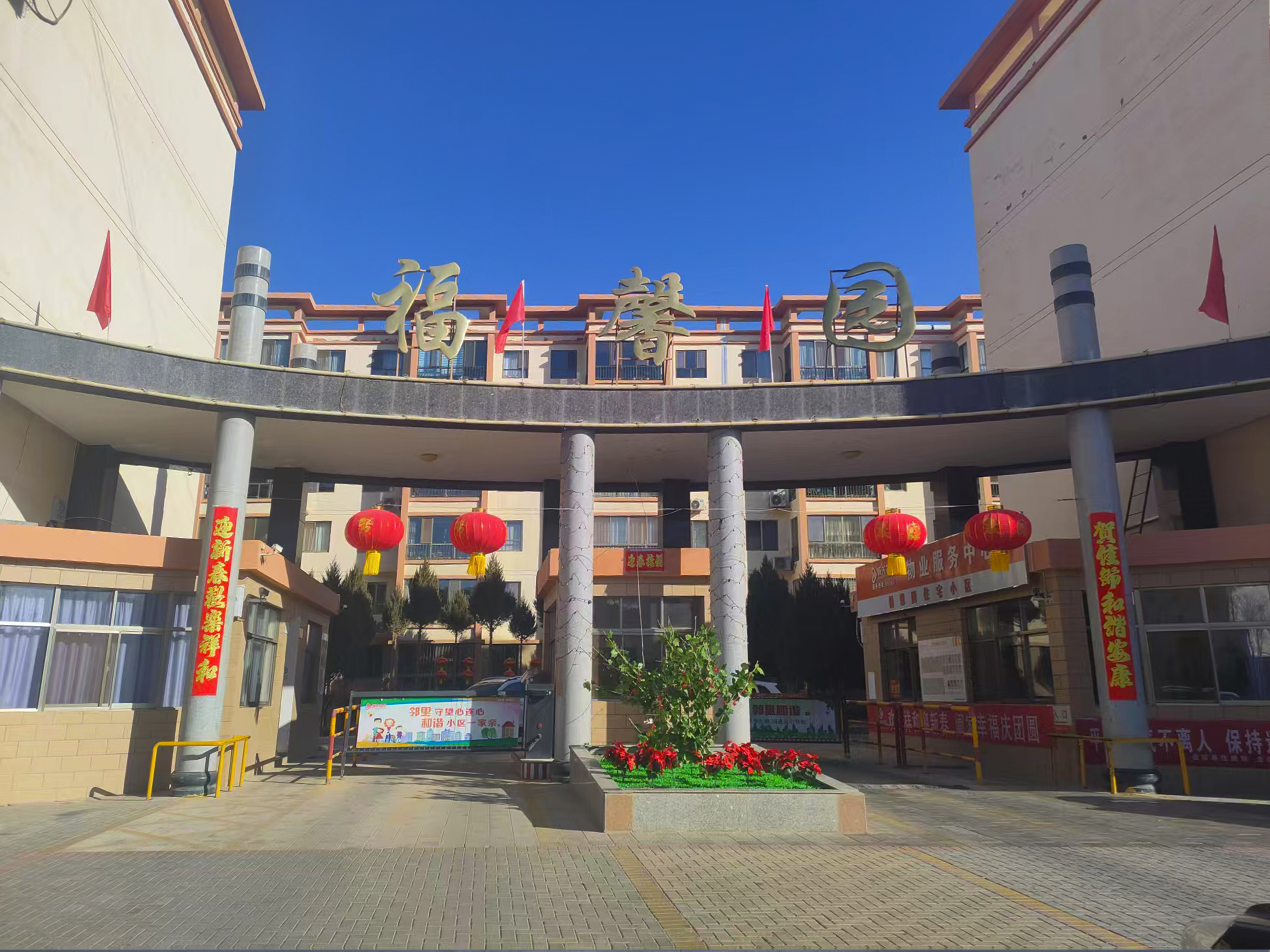 福馨園小區(qū),位于甘肅省酒泉市金塔縣神州大道1號(hào),2012年8月建成交房,占地面積8.5萬㎡,周圍環(huán)境優(yōu)美,左鄰公安局、右鄰金塔中學(xué)、臨近音樂噴泉廣場(chǎng),共有多層36個(gè)單元399戶、小高層9個(gè)單元160戶,小區(qū)周邊商鋪51個(gè),停車位252個(gè)。2023年10月,城關(guān)物業(yè)酒泉分公司入駐該項(xiàng)目。