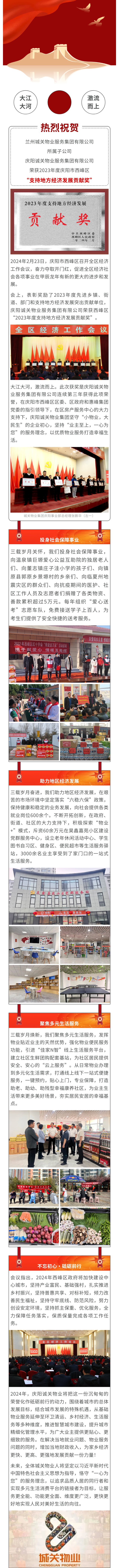 大江大河 激流而上|慶陽誠關物業(yè)服務集團榮獲2023年“支持地方經(jīng)濟發(fā)展貢獻獎”
